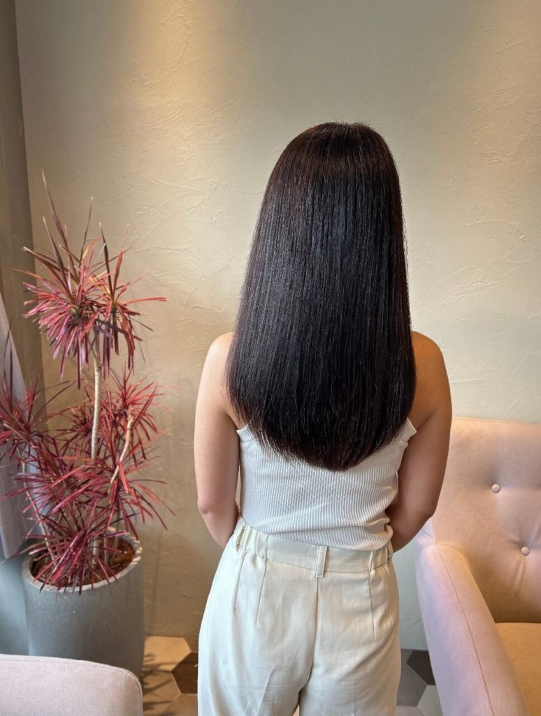 あと、もうひとつの魅力はダメージの少なさ!カラーってどうしても髪に負担はかかるんですけど、イルミナは金属イオンの影響を抑えてくれる処方になっていて、仕上がりの手触りがなめらかなんです。染めた後に「指通りが全然違う!」って言ってくださる方も多いですよ。
